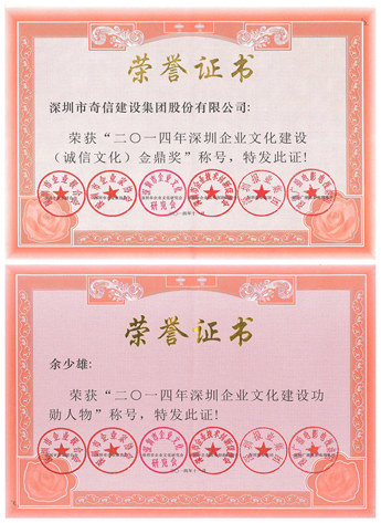 1、“2014深圳企业文化建设(诚信文化)金鼎奖”