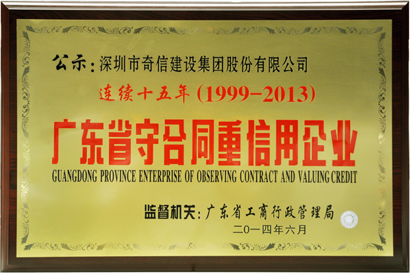 2、连续15年被广东省工商行政管理局授予“广东省守合同重信用企业”称号