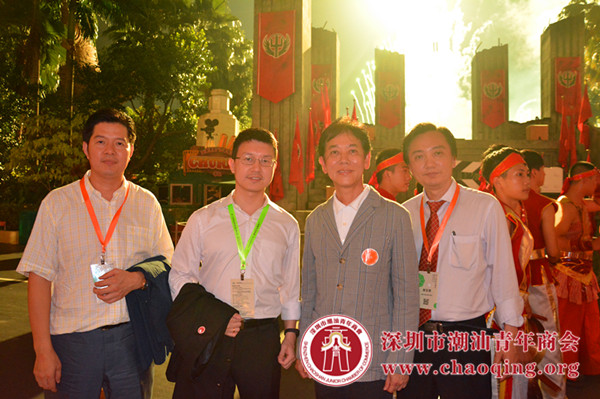 本会代表李奕标会长、黄大卫常务副会长、黄坚泰秘书长与新加坡潮州八邑会馆会长郭明忠在闭幕式上合影。