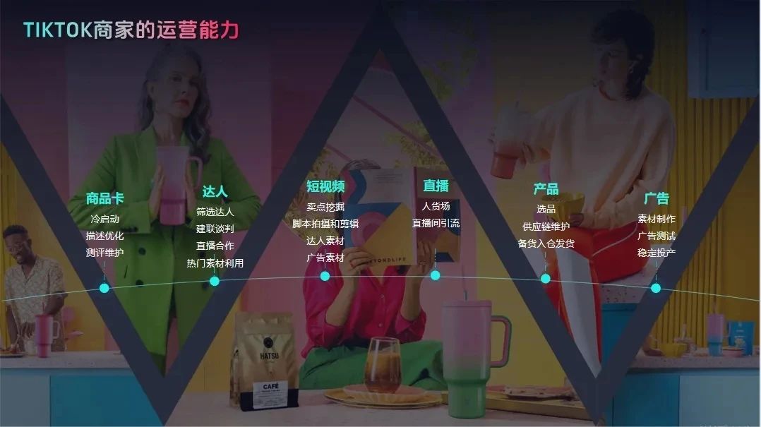 第五个板块是产品本身。即产品怎么去选择供应链和备货数量。最后一个板块是广告素材的制作,达人帮你拍视频曝光,或者自己剪辑视频去投放,这个板块的要求比较高一些。