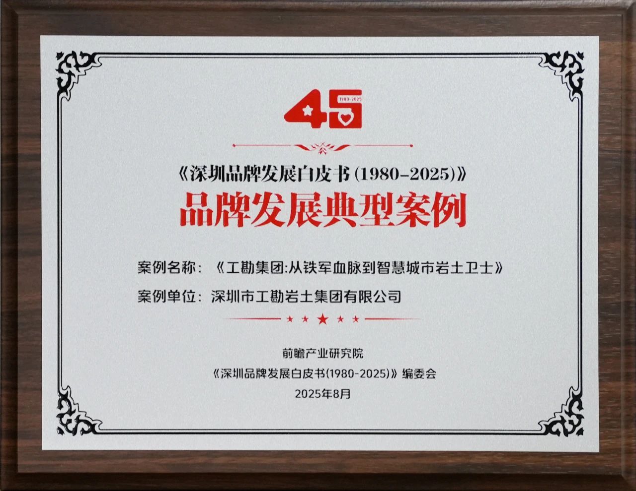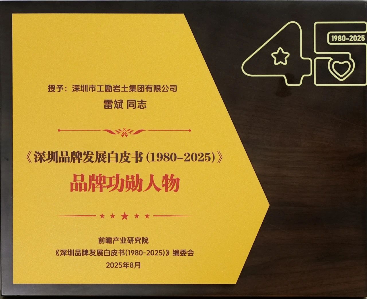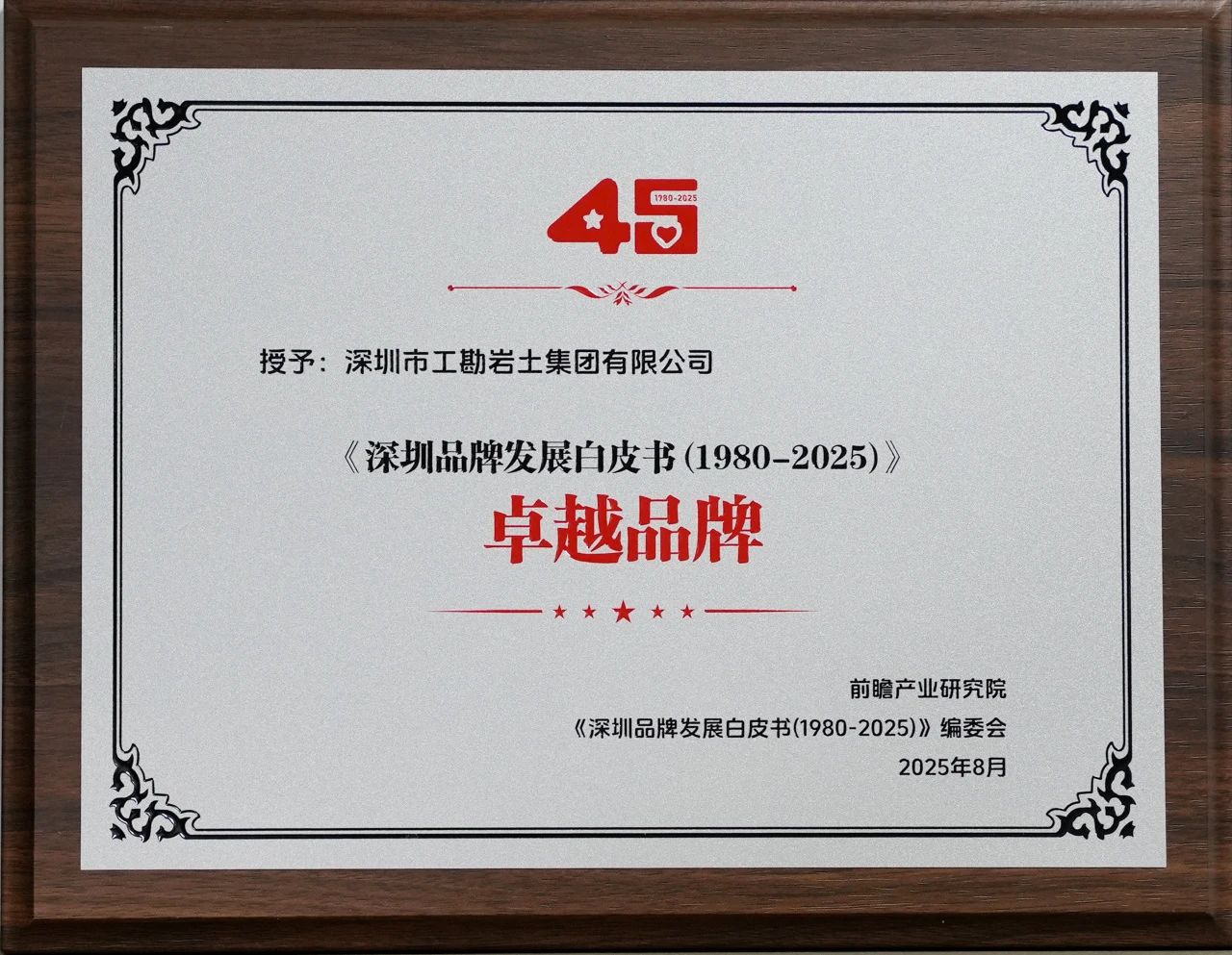 此次荣誉不仅是对工勘集团综合实力的认可,更是深圳特区精神在新时代企业发展的生动诠释。未来,工勘集团将持续深耕“岩土多元+数智科技”发展战略,以红色基因铸魂、以科技创新赋能、以品牌力量引领,争做特区品牌高质量发展的践行者、行业技术进步的助力者、智慧城市建设的守护者。