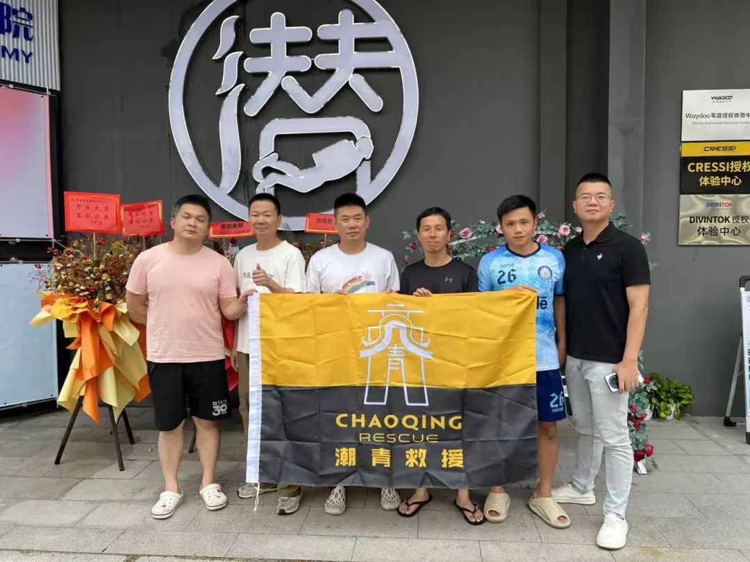 深圳市潮青商会公益基金会执行秘书长兼救援队队长杨祥奎,救援队水域安全训练官韦穗川,队员林煜鑫、麻丹鹏、林少塘,商会常务理事郑鑫城和理事吴南辉等参加活动。