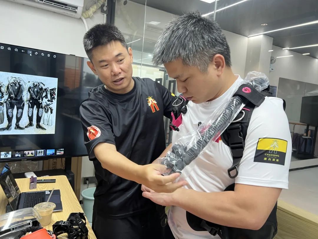 实操环节以情景式、互动式的教学方法开展。在低洼地带救援训练中,队员们学习了使用控制浮力背心(BCD)、水下呼吸技巧、水下平衡耳压技巧等基本技能,通过进行调节器排水技巧、调节器二级头寻回技巧、水下面镜排水技巧以及水面伤员拖带技巧等实操演练,进一步提升了在复杂水域环境下的自救与互救能力。