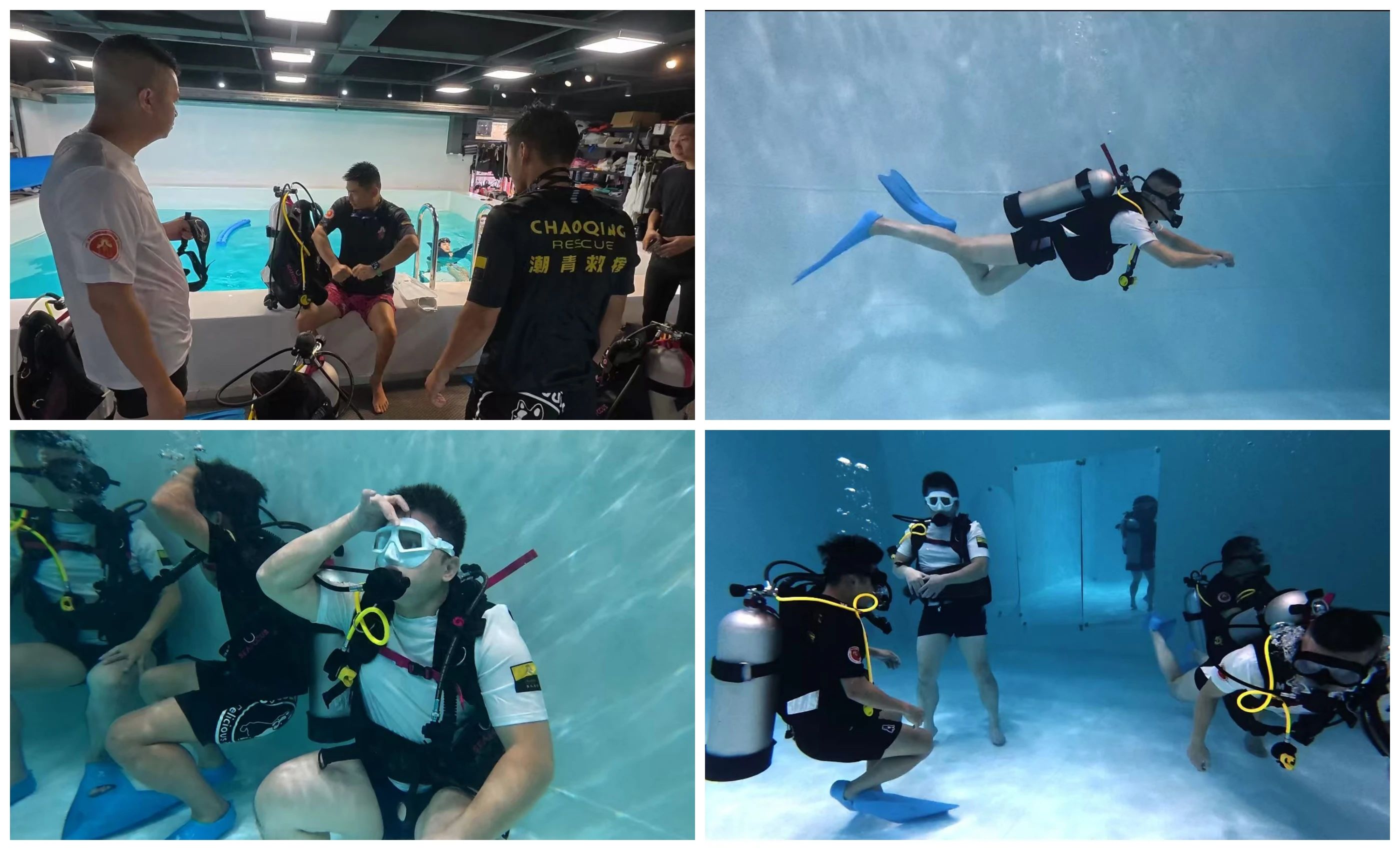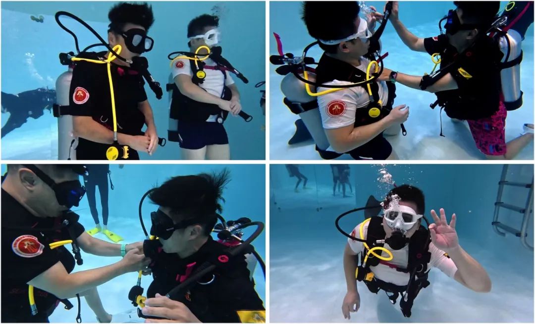 进入深水区救援基础技巧训练,水域安全训练官指导队员们进行中性浮力水下游动、无能见度证物巡回等动作练习,讲解了使用dpv水下推进器救援操作、紧急情况下交换呼吸器操作、水下装备穿戴互换以及有控制紧急上浮等技巧。