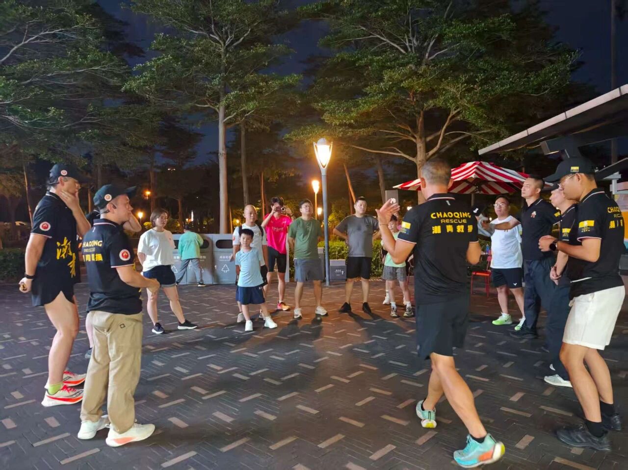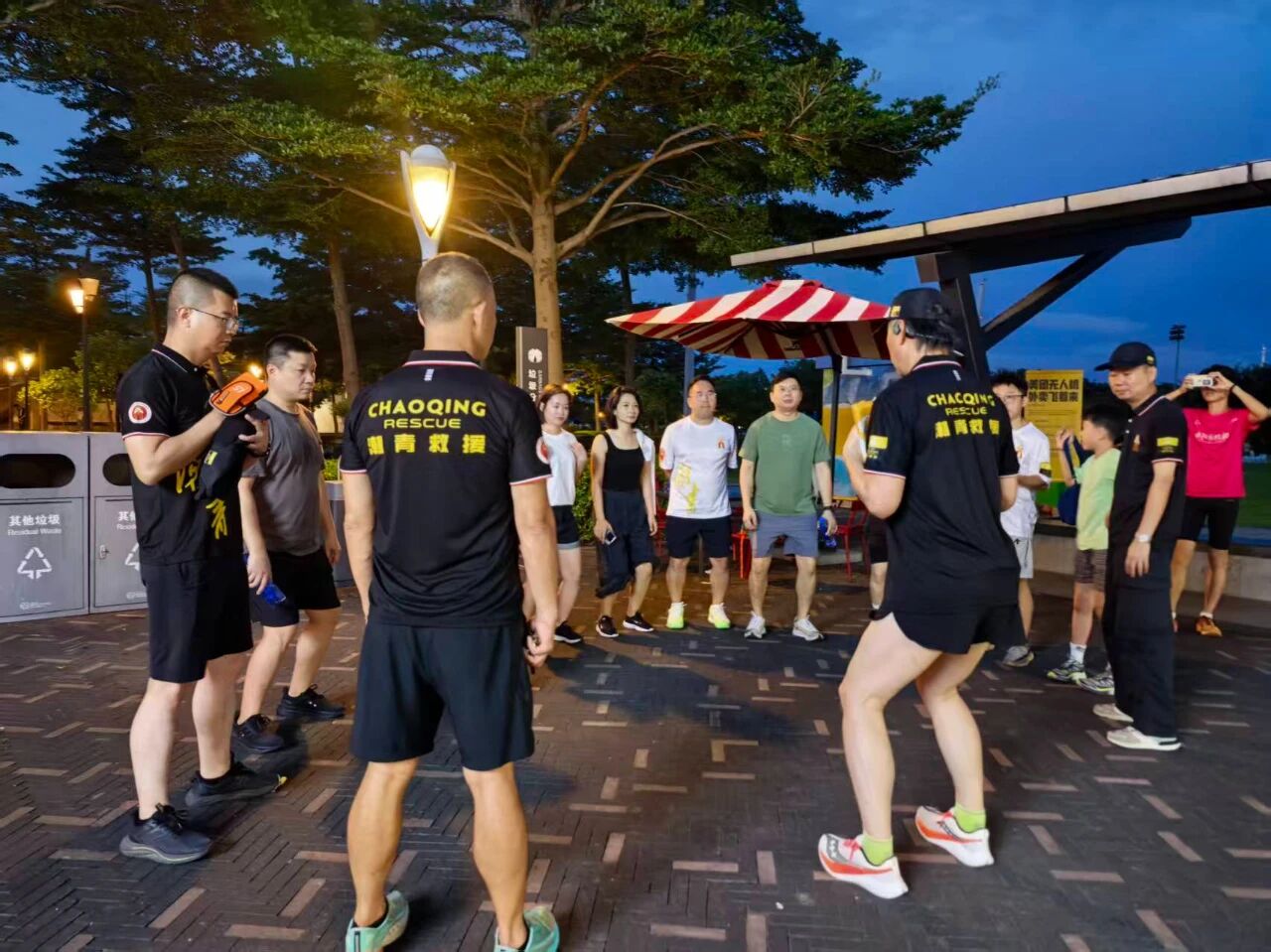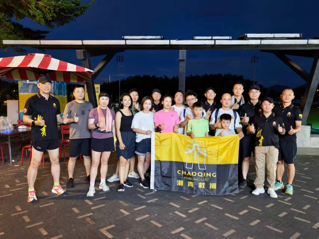 2025年8月28日晚,深圳市潮青商会公益基金会救援队在深圳湾海风运动公园举行第一次健康夜跑活动。