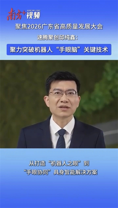 在2月24日举行的2026广东省高质量发展大会上,深圳市潮汕青年商会名誉会长、深圳市速腾聚创科技有限公司(2498.HK)董事长兼首席科学家邱纯鑫作视频发言。