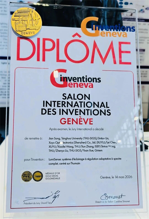 当地时间2026年3月14日,第51届日内瓦国际发明展上,由深圳市潮汕青年商会副会长林金填企业旭宇光电(深圳)股份有限公司联合清华大学宋健团队、法国ISEP张迅教授团队、有研稀土新材料共同研发的LumiSense:以人为本的自适应全光谱照明系统,凭借全球首创的技术突破与产业化价值,摘得本届发明展最高奖项金奖。这是中国光健康领域技术在国际顶级发明展上获得的最高荣誉,标志着我国在智能健康照明领域的创新实力获得国际权威认可,向全球展现了中国光电产业向价值链高端攀升的动能。