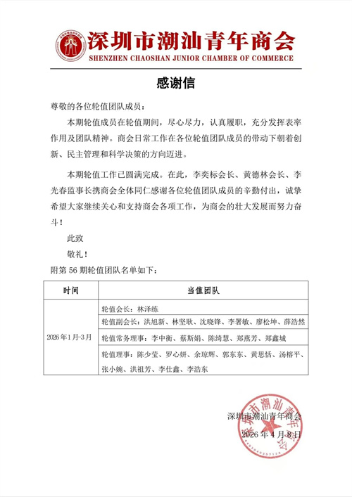 新一期轮值团队成员表示,将在延续优良传统的基础上,进一步丰富活动类型,深挖内部资源,利用成员在各自领域的专业优势,促进潮青企业间的交流对接;同时组织开展文化、体育、公益类活动,以提升潮青们的参与感与幸福感,共同谱写新一期轮值团队的精彩篇章。