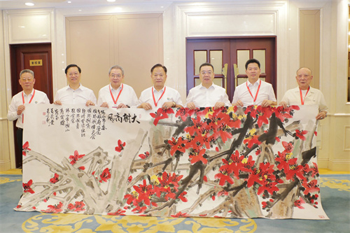 交流期间,吴木兴主席、陈幼南执行主席、吴开松会长、李奕标会长、黄胪生会长分别代表国际潮团总会、国际潮商经济合作组织、国际潮青联合会及佛山市潮汕商会共同向佛山市委市政府赠送纪念品,刘杰常务副市长代表佛山市委市政府接受赠送。