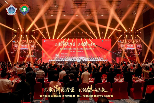 4月10-11日,第五届国际潮商经济合作年会、佛山市潮汕商会成立20年庆典在佛山举行。佛山市委市政府、各级各部门领导、五区负责同志,潮汕四市领导,以及来自全球30多个国家和地区200多家潮属社团的侨领、会长及代表等1600多人出席活动。