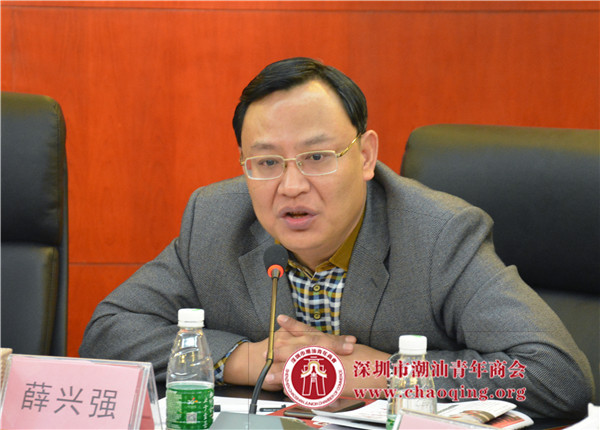 深圳市工商联党组成员、专职副主席薛兴强指出潮青商会在三年的时间里不断壮大发展,成为了一个有影响力,有凝聚力的商会,非常值得肯定。他希望潮青商会能围绕国家的战略方针,发挥自身优势,致富思源,自觉履行社会责任,传承老一辈的优良传统,不断发展。同时,他也希望大家能积极建言献策,推动党委政府有关政策的落实,营造良好环境,把握发展机遇,增强发展信心,构建新型政商关系。