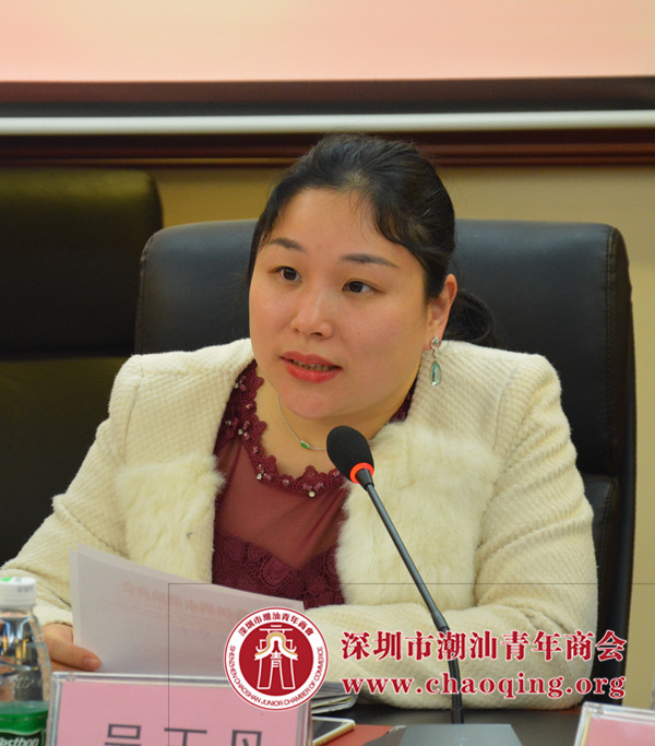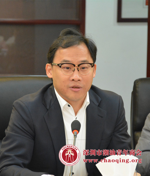 在会上,深圳市潮汕商会创会会长吴开松对调研组一行表示欢迎。他指出深圳市潮汕青年商会汇聚了一大批80后、90后的新一代有实力的潮青。他们勇于拼搏,求进步,求创新,团结好学。他们用先进的理念,创新的管理,为公司注入新的活力,不断发扬潮商精神,带领企业走向全国,走向世界,书写潮商的新篇章。