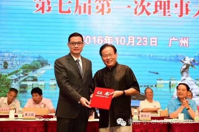 大会选举产生了广东潮联会第七届常务理事会组成人员名单,蔡东士连任会长,省侨联副主席戴文威为蔡东士颁发了会长证书。