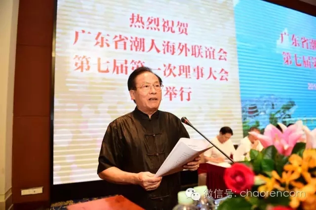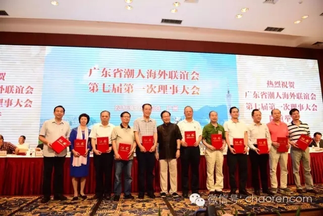 10月23日上午,广东省潮人海外联谊会第七届第一次理事大会在广州东方宾馆隆重举行。出席本次大会的领导和嘉宾有:广东省委原副书记、广东省潮人海外联谊会会长蔡东士,广东省政府原副省长、广东省潮人海外联谊会常务副会长许德立,广东省人大原副主任、广东省潮人海外联谊会常务副会长黄伟鸿,广东省政协原副主席、广东省潮人海外联谊会常务副会长李统书,广州军区装备部原副部长、少将林有秀,南方医科大学原校长、少将郑木明,广州市原副市长陈传誉,广东省侨联副主席戴文威,广东省社会组织管理局副局长徐祖平,广东省侨联联络部部长林建光,广东省侨办调研员范培。