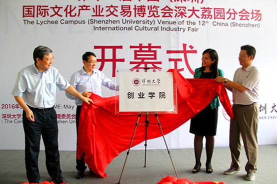 2016年5月12日,第十二届文博会深大荔园分会场隆重开幕,海岸集团董事长李奕标、董事朱力为受邀出席开幕仪式。开幕式上,南山区区长王强、深圳大学校长李清泉、团市委书记蔡颖、集团董事长李奕标共同为深圳大学创业学院揭牌,深圳大学创业学院正式成立。