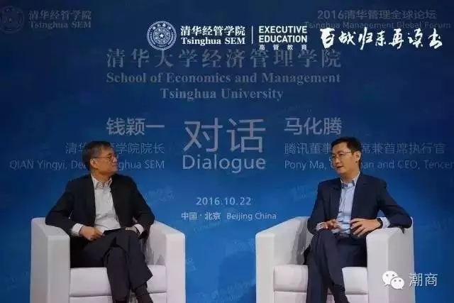 10月22日下午,腾讯董事会主席兼CEO马化腾参加清华大学经管学院2016清华管理全球论坛,发表了演讲并与清华经管学院院长钱颖一进行对话,就自己的成长经历、腾讯发展历程中经历过的困难以及微信诞生背后的故事,进行了分享。