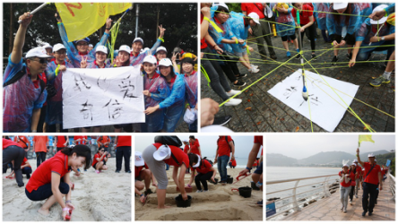 本次活动创新性地将“团队拓展项目”与“徒步之旅”完美结合,内容丰富,形式多样,融思想性、趣味性为一体。通过“同声共气 ” “斗转星移” “笔下生辉” “共筑梦想”等项目,进一步建立起员工的团队意识,并充分践行“沟通” “变通”的行为理念。在与大自然的亲密接触中,大家不仅领略了山海自然风光、开阔了视野胸襟,增进了友谊情感、磨砺了意志品质,而且增强了团队协作精神,经受了一次身体和心灵双重的洗礼。