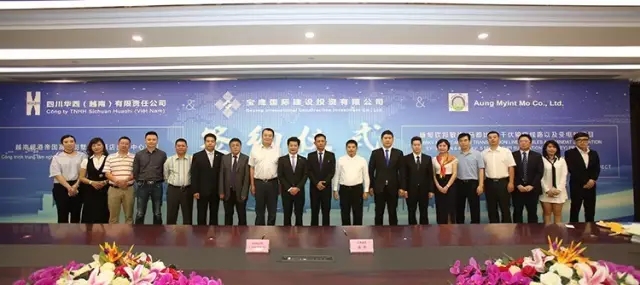华西集团代表、缅甸AMM公司代表、越南LCSP公司代表、缅甸KMA集团代表、华丰世纪投资有限公司代表,中国工商银行代表、工银亚洲代表、中国建设银行代表、华商银行代表、兴业银行代表、中信银行代表、中国出口信用保险公司代表、德勤会计师事务所代表、宝鹰集团代表共同见证此次签约仪式。