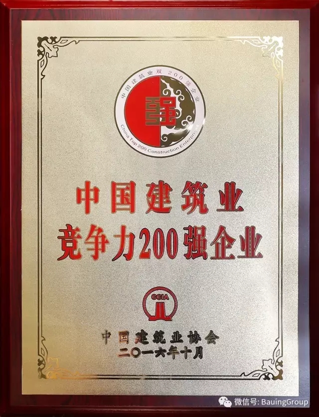 自2016年起,中国建筑行业协会将“中国建筑业双百强企业评价”调整为“中国建筑业双200强企业评价”(包括中国建筑业竞争力200强企业评价和中国建筑业成长性200强企业评价)。本次评选,宝鹰集团在来自全国28个省、自治区、直辖市建筑业协会和16家行业建设协会以及中建总公司、中国建筑股份有限公司、中国新兴总公司推荐的313家企业中成功突围,荣膺“2015年度中国建筑业竞争力200强”榜单。