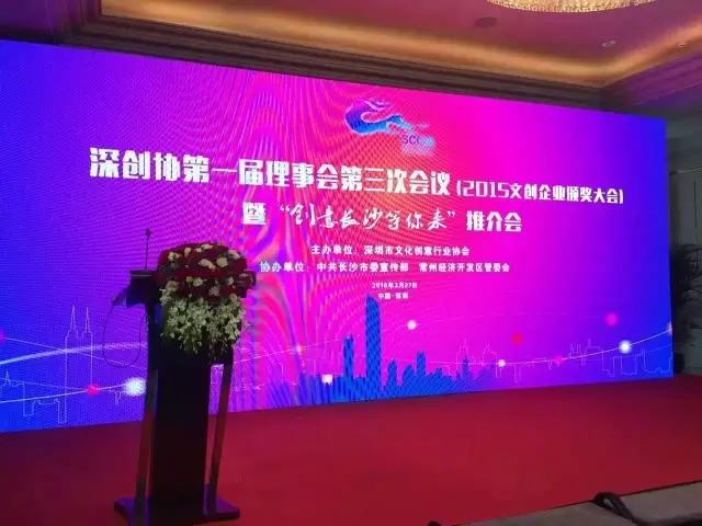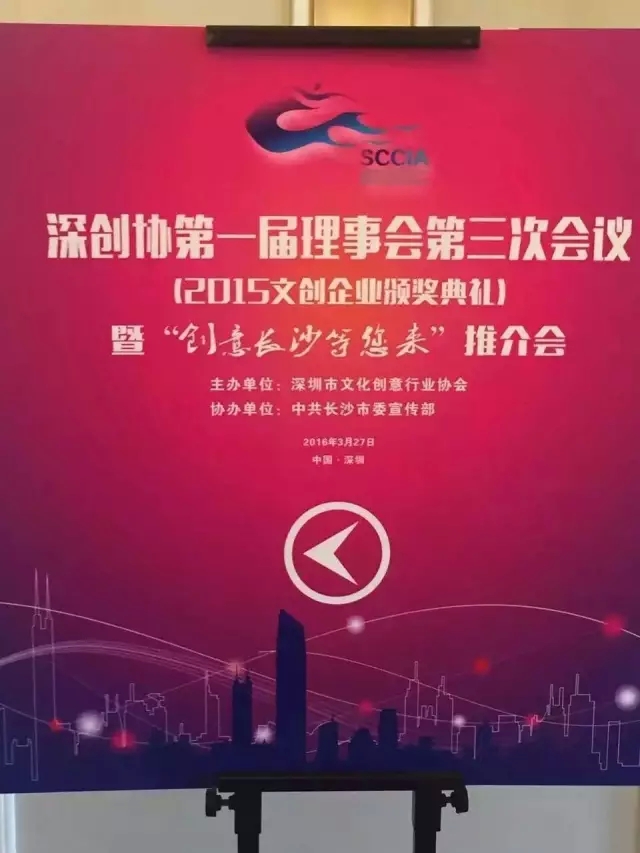 近日,深圳市文化创意行业协会第一届理事会第三次会议(2015文创企业颁奖典礼)暨“创意长沙等您来”推介会在深圳朗廷酒店隆重举行。