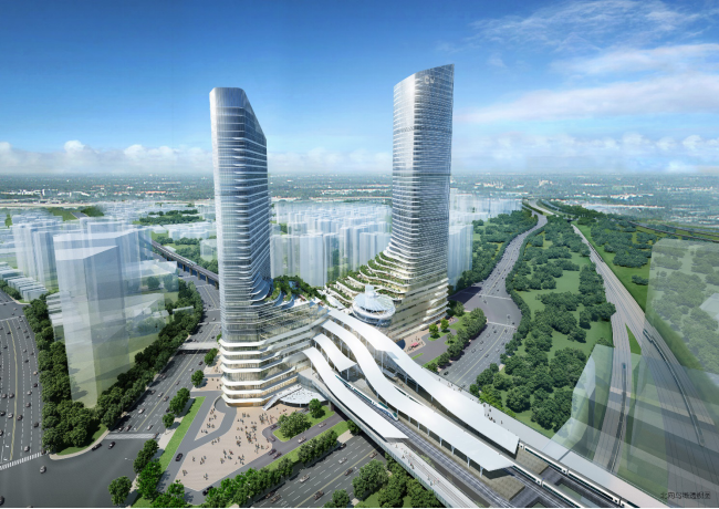 ITC项目独创立体化开发设计,形成多首层、多入口的商业布局,实现枢纽用地空间的集约利用。项目秉承“以人为本”的设计宗旨,以构建“城市公共活动中心”及“城市事件发生中心”为理念,设置了商业广场、屋顶花园、城市走廊、水体设施、绿化退台等融合共生的公共空间。最别出心裁的地方在于,该方案充分融入了广府及增城本地的人文特色。从远处看,综合体犹如一个绿谷,其中两高塔为山,低处为谷,轨道进站处的雨棚则如飘带般的水流,设计独特而美丽,与增城的白水寨风景遥相辉映。ITC项目的落成,将成为羊城八景之外的又一新景,同时,也将以260米的新高度成为广州东部第一高楼。据有关专家称,此项目建成后,它将成为我国TOD的模式典范。