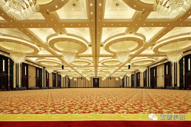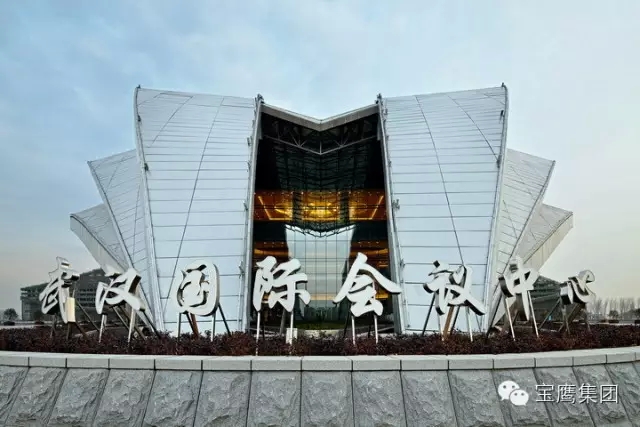 武汉国际博览中心会议中心位于武汉国际博览中心会展区和酒店区中间,为一座造型新颖、结构复杂、科技含量高的建筑。每个展厅长140米、宽72米,6个展厅连为一体,总面积达到6.5万平方米,均为大跨度无柱展厅。即在6.5万平方米、高20多米的房子中间,找不到一根柱子。这在国内极为罕见,焊接工艺误差以毫米计。宝鹰集团承建了会议中心 1-5 层室内精装修工程和室内外标识系统。本工程以国际水准的设计理念、高超精湛的施工工艺获得了业主和社会的广泛好评,曾获得全国建筑工程装饰奖(公共建筑装饰类)、武汉市建筑工程“黄鹤奖”金奖和湖北省优质建筑装饰工程“楚天杯”奖。