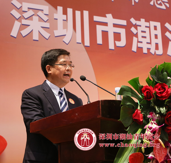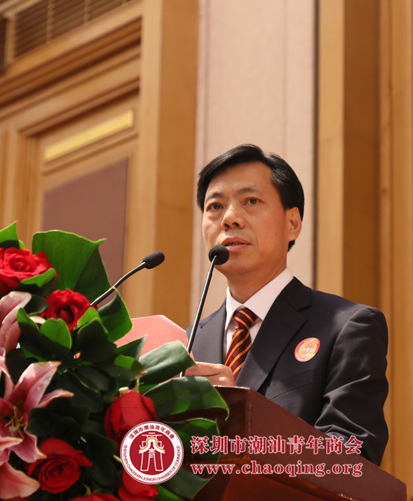 深圳市人大原代主任庄礼祥上台致辞。他表示潮汕商会自成立以来,同心同德,秉承潮人敢为天下先,艰苦奋斗的精神,开创新局面,使得潮汕商会赢得了广大会员及社会各界的认同和赞许,为社会经济、文化等发展做出了贡献。他希望在新常态下,商会能坚持“大潮汕,大团结,大联合,大发展”的思路,发挥潮商优良传统,带领商会走在社会组织的前列,打造有实力,有影响力的大商会!