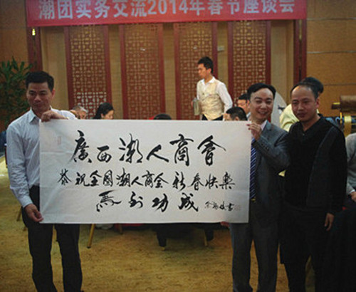 会议上,广西潮人商会秘书长陈泽龙还带来了广西潮人商会副会长佘声俊的新春贺词。