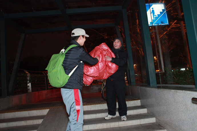 志愿者为地铁的流浪者送上温暖