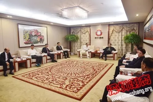 商会党委书记邓东向黄孟复主席汇报了中共深圳市潮汕商会党委的发展情况。