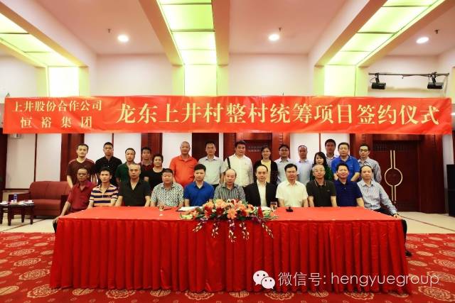 7月26日,恒裕集团与龙东上井村在长城大酒店举行了整村统筹项目合作会谈及正式签约仪式,恒裕集团董事长龚俊龙、金龙集团董事长廖奕裕、恒裕集团副董事长龚海鹏、恒裕集团总裁张勇华、上井股份公司董事长李雪粦和集团高层均出席了此次签约仪式。