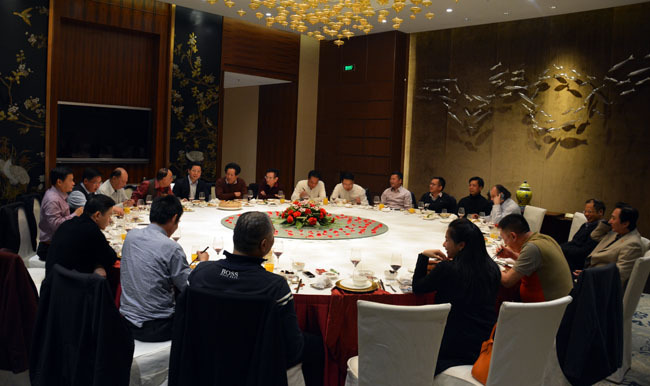 2月21日,来自海内外潮商会长在星河丽思卡尔顿酒店欢聚举行晚宴,共商合作发展大计。晚宴由深圳市潮汕商会常务副会长、深圳市普宁商会执行会长周南做东宴请主持。会长们先后发言,对潮汕集团成功竟拍前海地王表示祝贺。会长们还表示以后各个兄弟商会要加强联谊交流,双赢发展,达到信息、项目互动共享。为潮商事业做出更大的贡献。