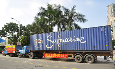 2013年8月20日上午,两辆卡车满载着面包、矿泉水等物资前往汕头揭阳,为家乡受灾的乡亲带去在深潮商的一份沉甸甸的关心与问候。