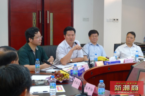 潮汕商会会长吴开松、常务副会长黄育宏、周南、谢学源、副会长吴镇耿、林少青等热烈欢迎区领导到访问。吴会长向杨区长汇报了商会成立以来的运营模式和国际潮商经合组织筹备成立情况,表示经合组织总部要设立在福田区,杨区长高度肯定商会所取得的业绩和运营模式,表示要支持国际潮商大厦的兴建。