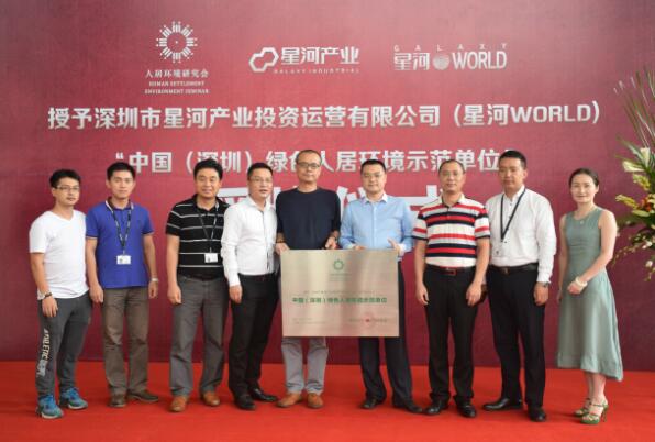 经深圳市人居环境研究会国际专家委员会审评,在报送的中国房地产第一批“中国(深圳)绿色人居环境示范单位”项目中,星河控股集团申报的“星河WORLD”荣摘中国(深圳)绿色人居环境示范单位的挂牌。