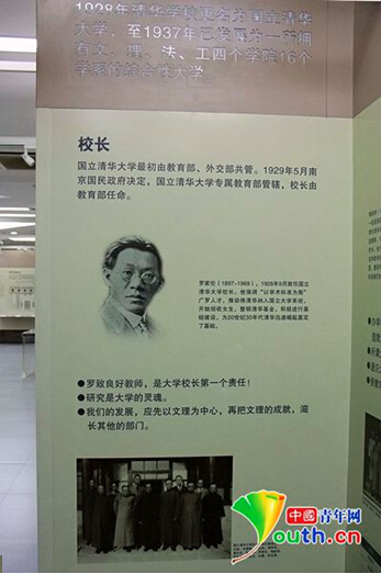 清华大学校史馆展出的罗家伦展板。中国青年网记者 隗功臣 摄