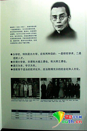 清华大学校史馆展出的梅贻琦展板。中国青年网记者 隗功臣 摄