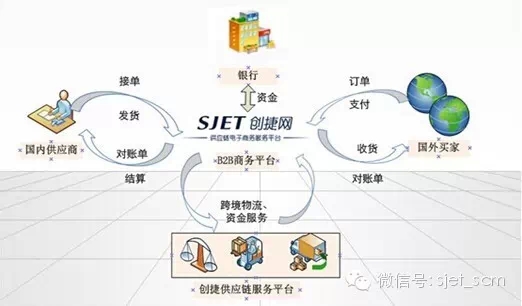 电子商务平台与一般的B2B电子商务平台存在明显的区别。一般的B2B电子商务平台主要是提供交易信息与撮合,平台建设方并不提供诸如资金、进出口物流等服务;创捷供应链B2B电子商务平台作为供应链行业的“协调员”之一,服务金融、通关、退税、外汇、销售、物流等所有环节,并通过B2B电子商务平台聚集了众多的海外客户、供应商、加工厂、物流服务商、银行、税务、海关、商检等等。基于供应链行业的电子商务平台新模式符合国家外贸政策,不仅是把电商平台向海外市场的拓展和延伸,更是对海外市场本地化运营的生动阐释。