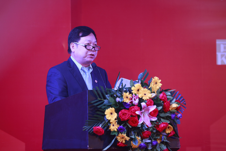 随后,宝鹰集团董事副总裁古朴致祝酒词。古朴副总裁在致辞中从自己切身参与的项目建设入手,切实地向各位参会嘉宾讲述了作为工程建设企业供应商的难处,并由衷地对各位供应商致以深厚的谢意。古朴副总裁还说:今天各位在朦朦冬雨中相聚,为友谊而来,更应该尽兴而去,且请诸位共同举杯,让友谊长青。
