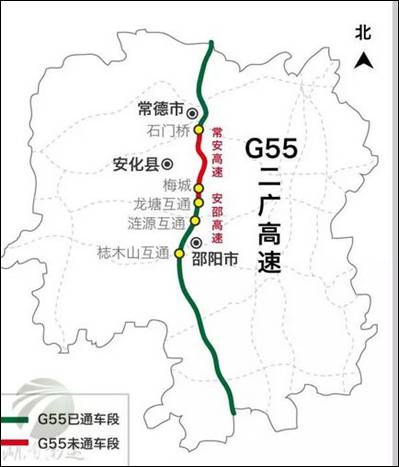 目前二广高速湖南段通车情况图