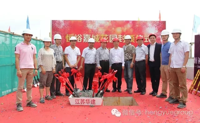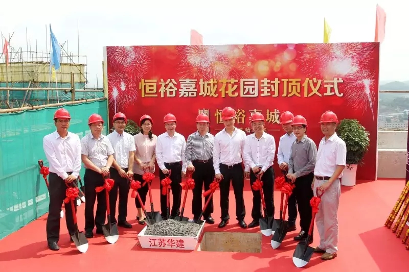 恒裕集团董事长龚俊龙、金龙集团董事长廖奕裕、恒裕集团总裁张勇华、恒裕资本董事长龚泽民、恒裕集团高管和恒裕嘉城项目部同事,在一片喜庆之下共同见证了恒裕嘉城的封顶仪式。