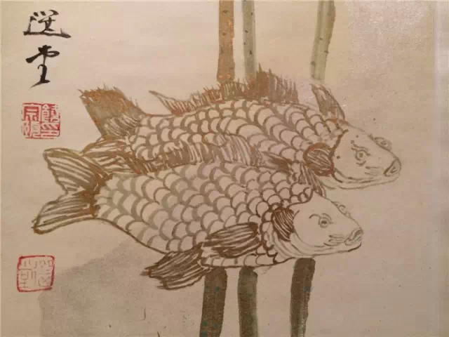 饶宗颐《金荷双鲤》(局部),“学艺融通——饶宗颐百岁艺术展”展品