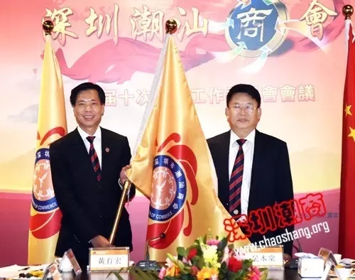 最后,吴木棠会长为常委授会旗。授会旗活动是第四届领导班子上任后的又一创新之举。未来,深圳市潮汕商会会旗将逐步传递到各会员企业,商会的品牌和影响力将通过会员企业得到更广泛传播。