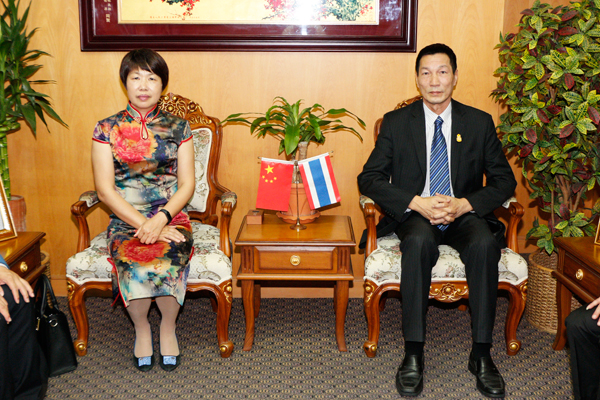 邝锦荣副会长首先代表李桂雄会长对詹琼英副县长一行的来访表示热烈的欢迎,并请转达李会长和青商会同仁向饶平县委张传胜书记、林文锋县长的问候。随后,邝锦荣副会长介绍了青商会和泰国的投资环境及优惠政策。他说,青商会成员的主体是来自祖国大江南北,中国改革开放30多年来旅居泰国的新华侨、新移民,很多都是杰出的企业家,潮汕籍成员很多,与祖国、广东联系紧密。泰国是“海上丝绸之路”的重要节点,是东盟的中心国家,社会稳定、治安好、包容性强,希望詹琼英副县长一行在泰多走走、看看,将泰国的好消息、新消息带回祖国和家乡。青商会将一如既往的发挥桥梁、纽带作用,推动更多泰国与潮州、饶平的企业家项目对接与合作。邝锦荣副会长表示,詹琼英副县长一行的来访不仅深化了泰国与潮州、饶平的友谊,巩固了两地的合作,也为两地企业家们创造了新的商机与平台。祝愿詹琼英副县长一行此次访问圆满成功、顺利平安!