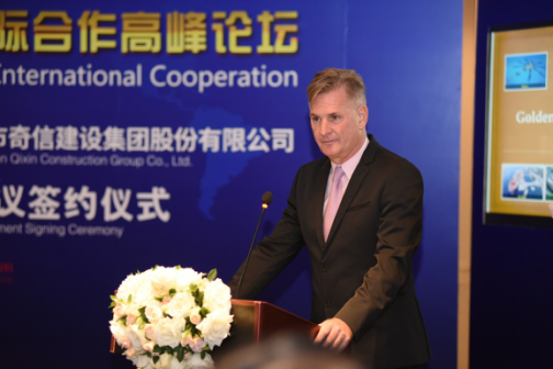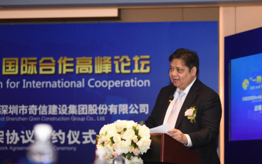 5月13日下午,深圳市奇信建设集团股份有限公司(以下简称“奇信股份”)在北京与印度尼西亚Best & Grow集团(以下简称“印尼BG集团”)签署战略合作框架协议。来华出席“一带一路”国际合作高峰论坛的印尼海事统筹部长潘查伊坦、印尼工业部长哈塔托、一带一路投资机构联盟理事会执行理事长林昊俊、奇信股份董事长叶家豪先生、印尼BG集团董事长李振合及两国政府其他官员代表、媒体代表等五十多位嘉宾出席了此次签约仪式。