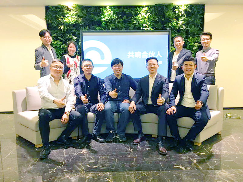 本会副会长李敏(前排右二)、叶洪孝(前排右一)、林晓义(前排左一)与中亚能源国际股份有限公司中国区投资总裁黄少杰(前排左二)、Airlab新共响创始人林远(前排中间)合影