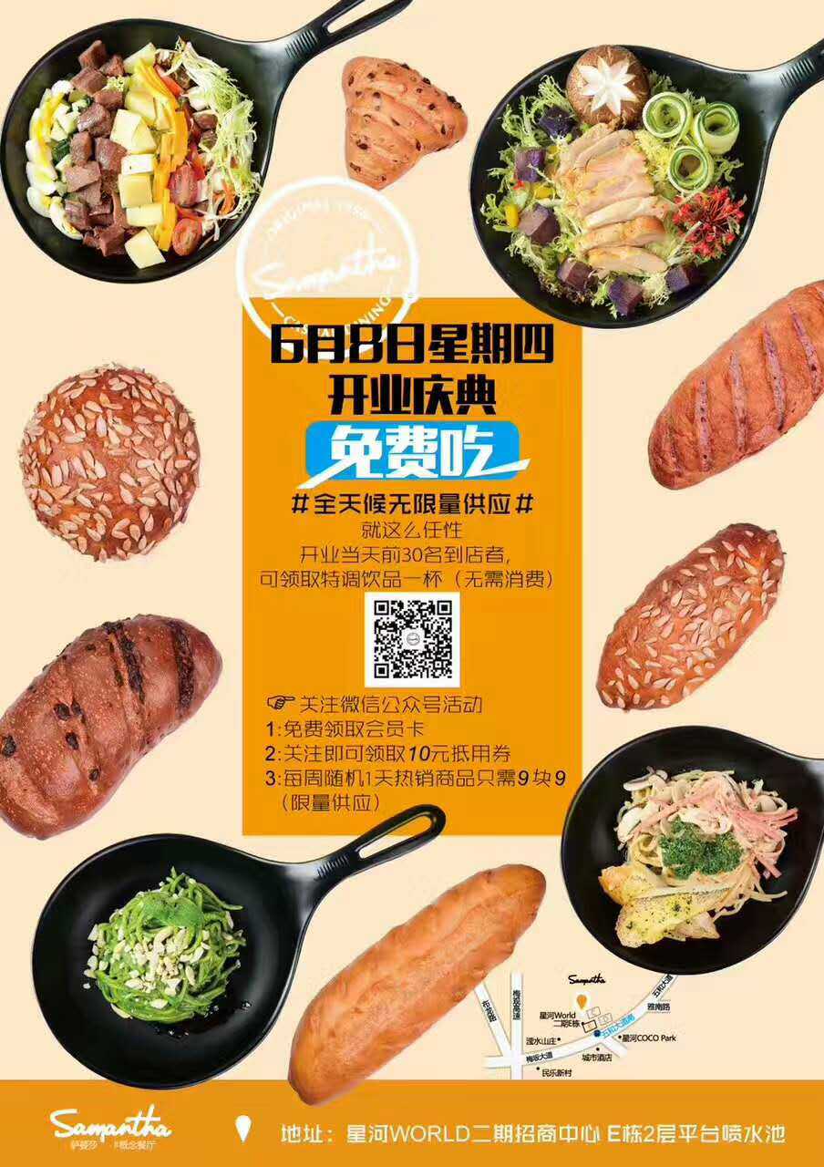更多优惠尽在微信公众号:SAMANTHA萨蔓莎,公众号可在线点餐、预约餐位,第一时间获取优惠信息,做您的餐厅小秘书。