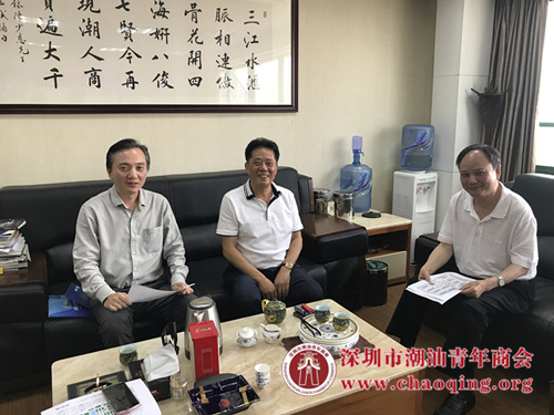 深圳市汕头商会会长、侨商智库理事长郑汉明会见本会秘书长黄坚泰,图由左至右分别为:黄坚泰秘书长,郑汉明会长,深圳市汕头商会秘书长黄建平