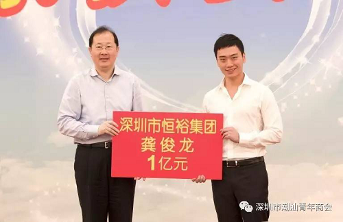 恒裕集团副董事长、深圳市潮汕青年商会副会长龚泽民代表董事局主席龚俊龙出席了本次活动,捐赠1亿元支持慈善事业。并且,龚俊龙主席荣获“2016年广东扶贫济困红棉杯金杯奖”。截至目前,恒裕集团已累计为社会捐款超过9亿元。