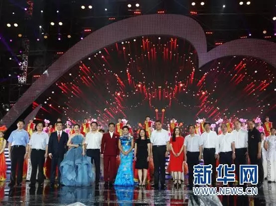 出席晚会的领导嘉宾与演职人员合影留念